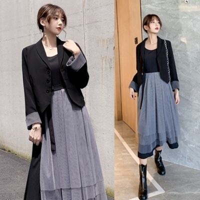 セットアップ レディース カジュアル きれいめ おしゃれ 春 春秋 ワンピースセット ミモレ丈 ひざ下丈 ワンピース ワンピ ドレス チュール ノースリーブ リボン ブラック 黒 グレー 大きいサイズ XL 2XL 3XL 4XL 20代 30代 40代 50代