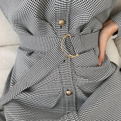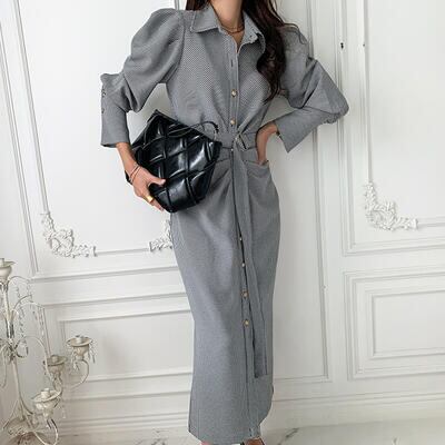 ワンピース 春 きれいめ 袖あり カジュアル おしゃれ レディース ワンピ ドレス ロング丈 フィット スリム タイト グレー チェック柄 長袖 ママ おしゃれ 入学式 母 ミセス 入園式 20代 30代 40代 50代