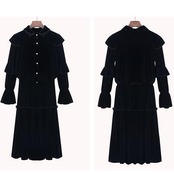セットアップ レディース カジュアル きれいめ 可愛い おしゃれ ワンピース ガーリー 長袖 クラシカル レトロ スカートセット フレアスカート ひざ下丈 ミモレ丈 大きいサイズ 小さいサイズ 上下セット ベルベット 春 春秋 秋冬 ブラック 黒 20代 30代 40代 50代