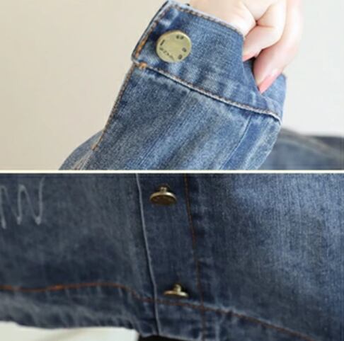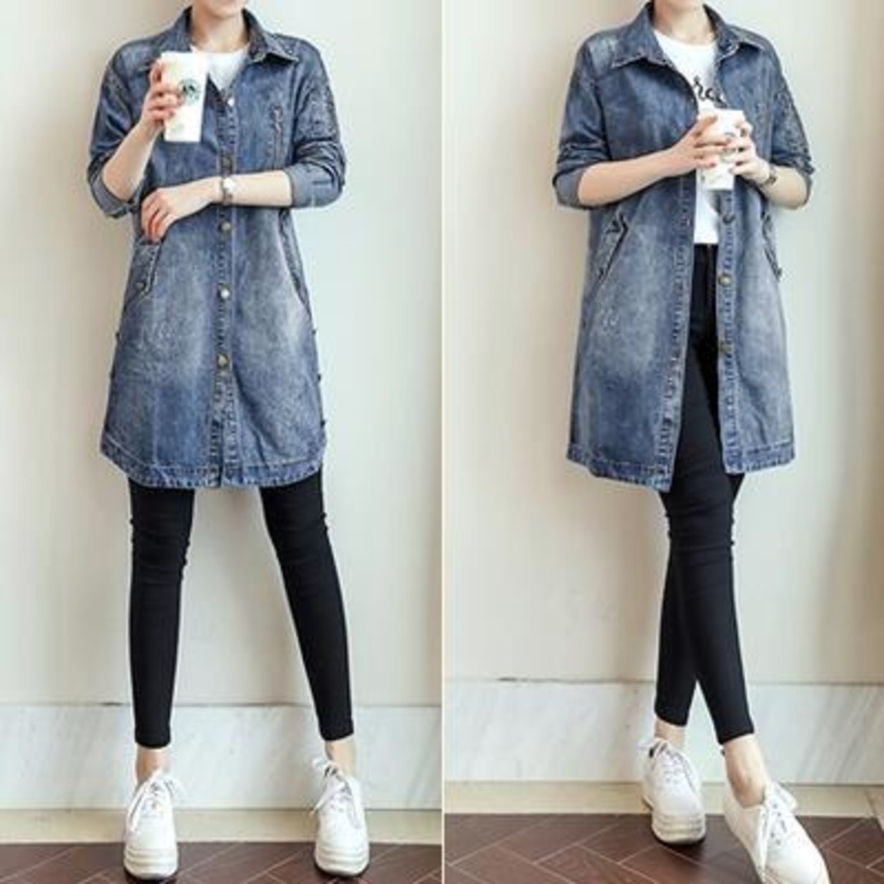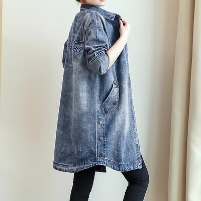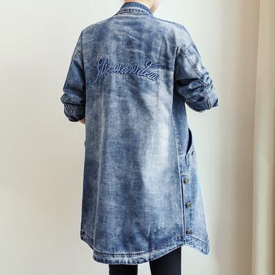 アウター 春 ジャケット コート ロング丈 レディース 40代 デニム 春秋 シャツ 体型カバー 太ももカバー お尻カバー フロントボタン バックプリント カジュアル 長袖 大人 かっこいい カバーオール ダメージ 大きいサイズ ブルー 青 20代 30代 50代