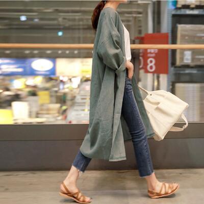 全3色 アウター 春 レディース 40代 ロング 春コート 可愛い スプリングコート 春秋 ロングカーディガン リネン おしゃれ ナチュラル 長袖 ジャケット 大きいサイズ 体型カバー カジュアル ネイビー カーキ グリーン 20代 30代 50代