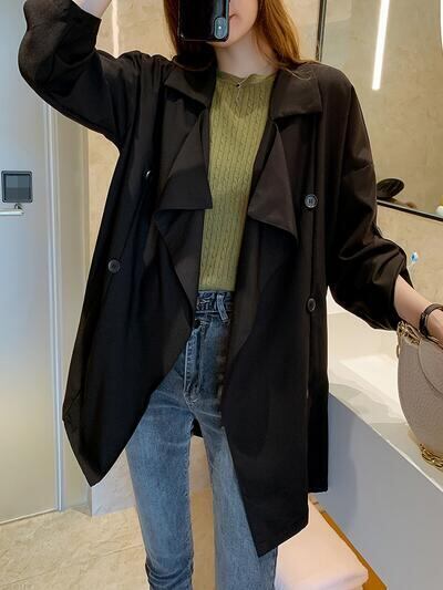 全3色 アウター 春 レディース 40代 ショート 春 ジャケット 可愛い スプリングコート 春秋 おしゃれ きれいめ かっこいい 通勤 長袖 七分袖 ビッグシルエット オーバーサイズ ゆったり 大きいサイズ シンプル カーキ グレー ブラック 黒 20代 30代 50代