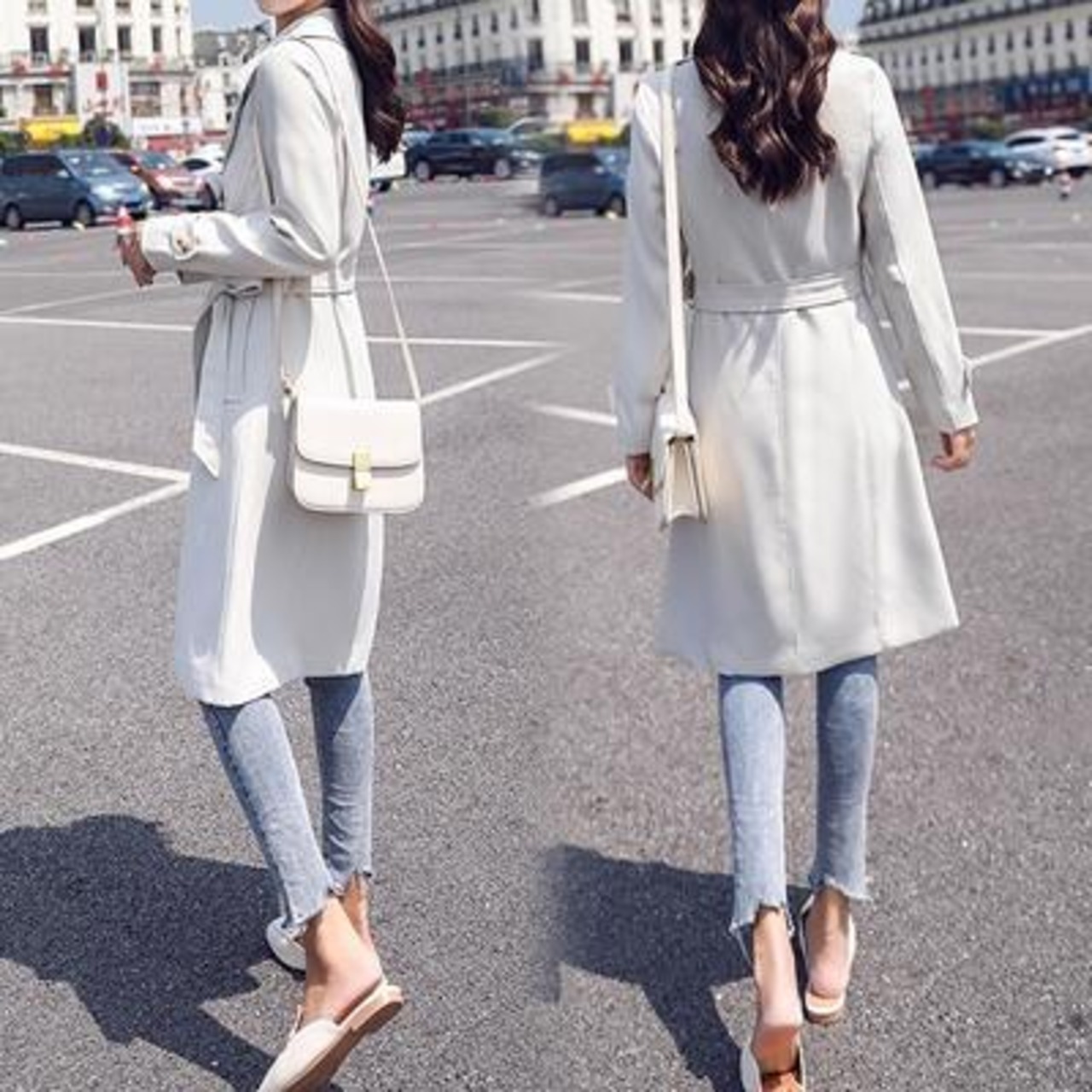 オフィスやお出かけに大活躍のトレンチ風ロングコートです。