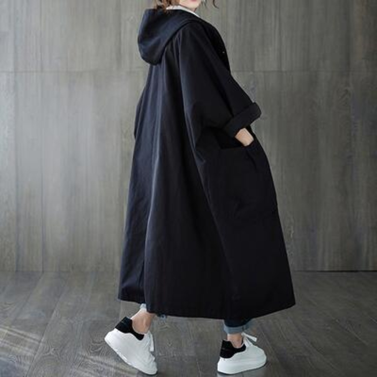 全2色 アウター 春 レディース 40代 ロング 春 コート スプリングコート 春秋 秋冬 おしゃれ 長袖 フード付き ビッグシルエット オーバーサイズ カジュアル Aライン 大きいサイズ ゆったり 体型カバー フリーサイズ シンプル カーキ ブラック 黒 20代 30代 50代