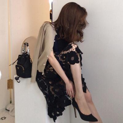 フェミニンなレーススカートは、ふわっと広がるデザインで主役級の存在感。
