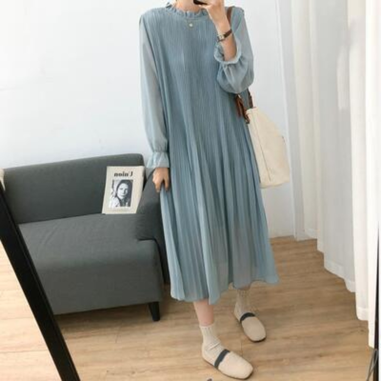 エアリーな雰囲気でゆるっとしたサイズ感のロングワンピース。