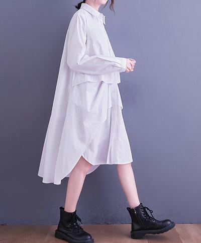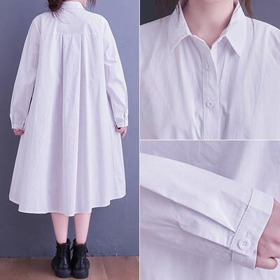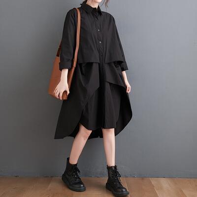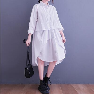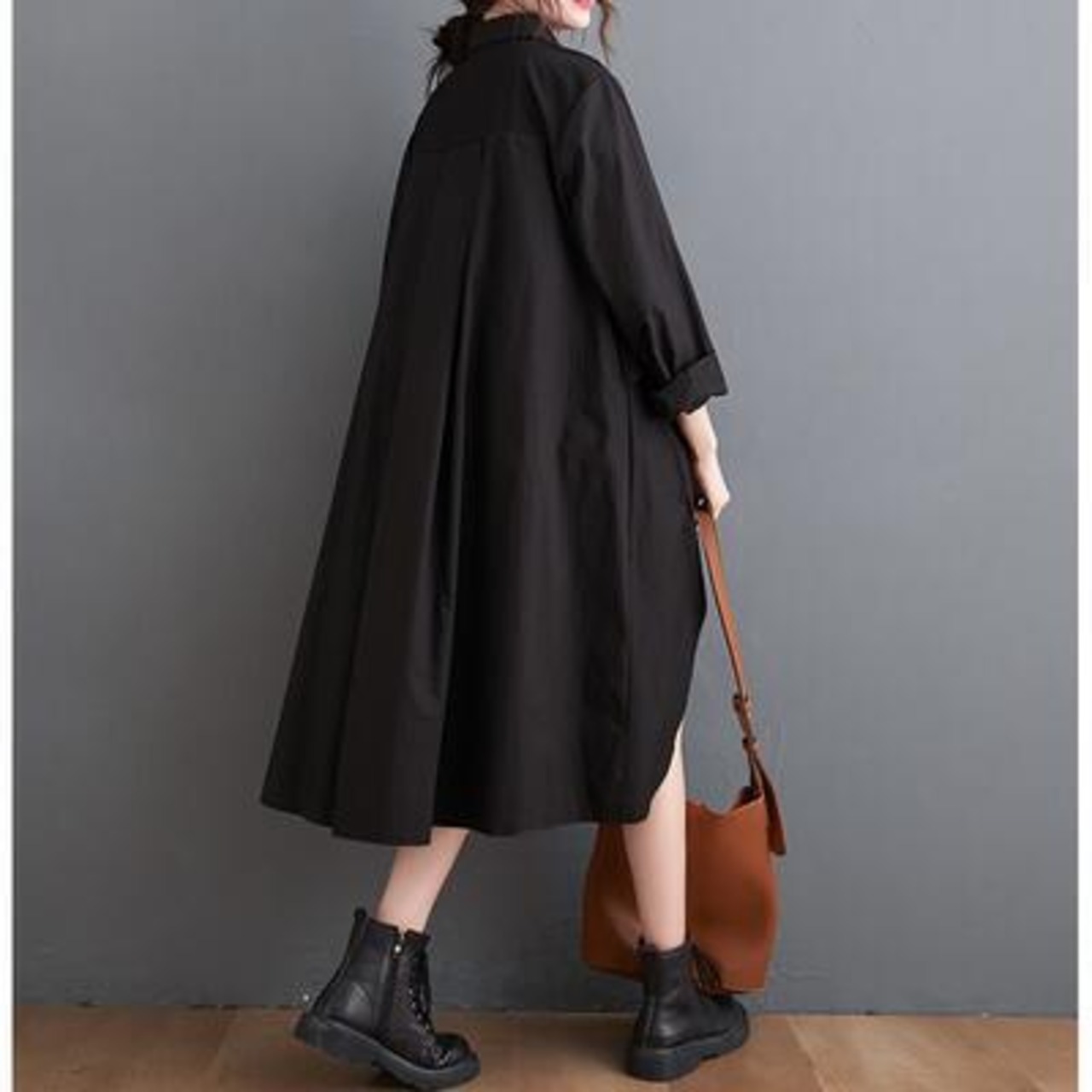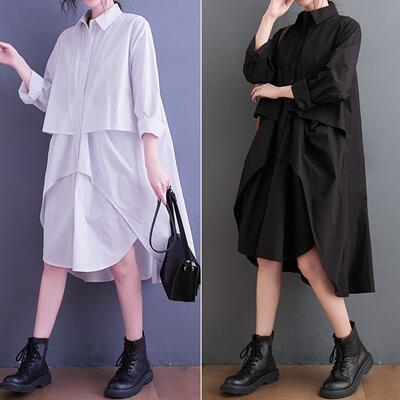 全2色 ワンピース きれいめ ミモレ丈 ひざ丈 カジュアル 春 春夏 春秋 長袖 おしゃれ レディース モード シャツワンピ ワンピ ドレス ゆったり ビッグシルエット 体型カバー お尻カバー 大きいサイズ ホワイト 白 ブラック 黒 20代 30代 40代 50代