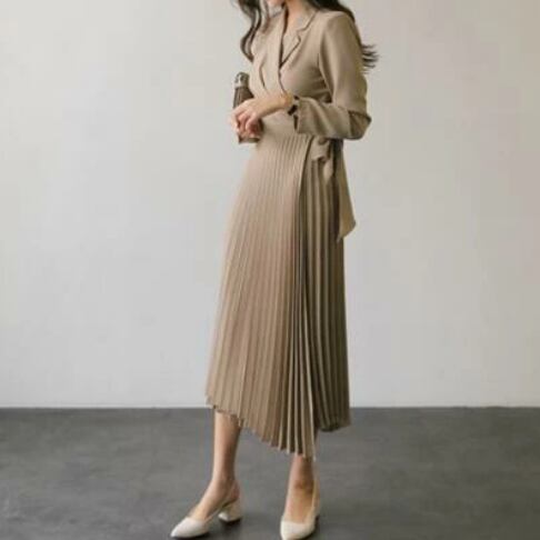 胸の部分には立体的なデザインを施し、スカート部分はプリーツで、
