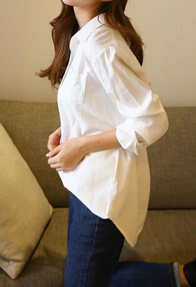 トップス レディース 袖あり ブラウス カジュアル シャツ おしゃれ 春 春夏 春秋 可愛い きれいめ 長袖 シンプル 定番 ベーシック 通勤 ナチュラル 着回し レイヤード ゆったり 大きいサイズ オールシーズン ホワイト 白 20代 30代 40代 50代