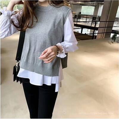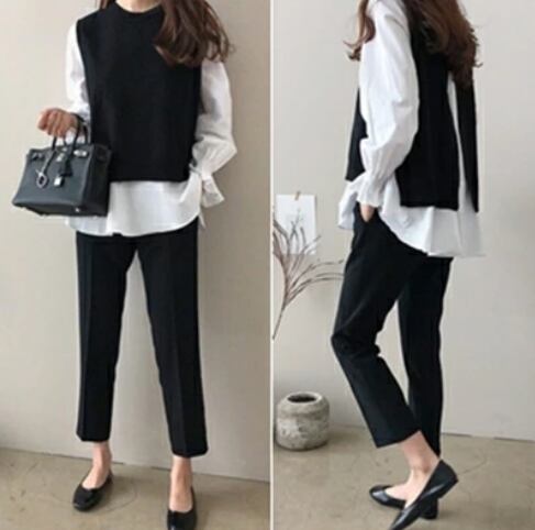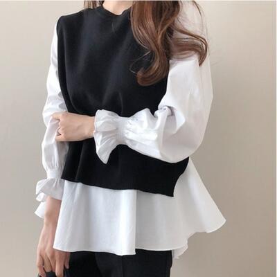 長袖ブラウスとベストのセットアップです。