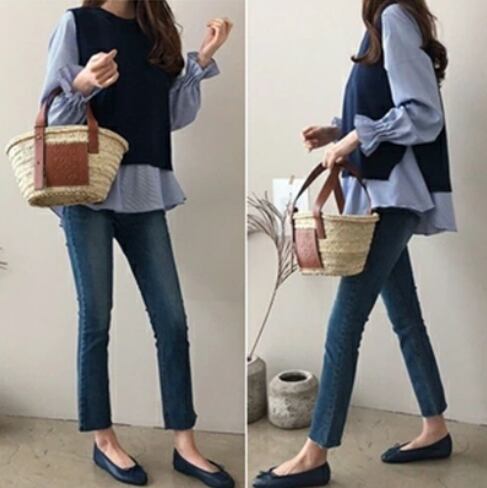 全3色 セットアップ レディース カジュアル きれいめ おしゃれ 春 春秋 ベストセット ブラウス シャツ 長袖 可愛い 着回し レイヤード ツーピース 通勤 お腹カバー 大きいサイズ ストライプ ブラック 黒 ホワイト ブルー 20代 30代 40代 50代
