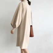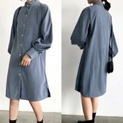 ボリュームのある袖がポイントのシャツワンピースです。