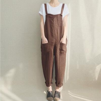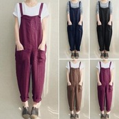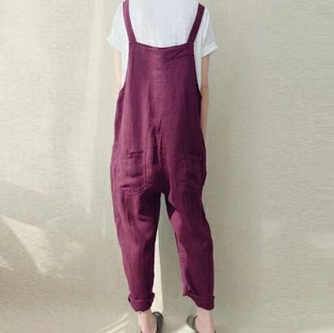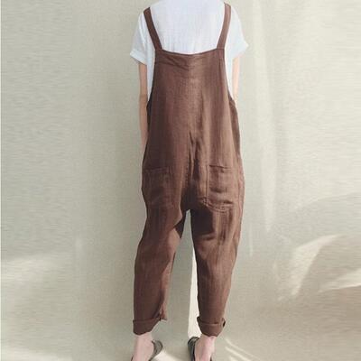 全4色 オールインワン パンツ サロペット 春 レディース カジュアル おしゃれ 春秋 春夏 オーバーオール 夏 ノースリーブ ロング丈 9部丈 シンプル 体型カバー 大きいサイズ ゆったり ネイビー ブラック 黒 ブラウン ダークレッド 20代 30代 40代 50代