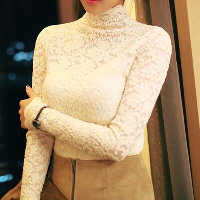 全2色 トップス レディース ブラウス エレガント シャツ おしゃれ 春 春夏 春秋 可愛い きれいめ 長袖 ハイネック レース スタンドカラー カットソー 通勤 お出かけ ガーリー フェミニン 大きいサイズ 小さいサイズ ホワイト 白 20代 30代 40代 50代
