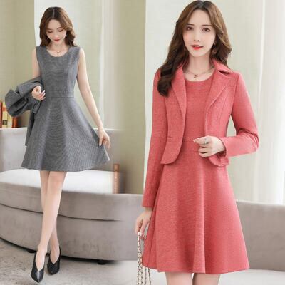 ノースリーブのワンピースとジャケットのセットアップなのでいろいろなシーンで活躍できます♪