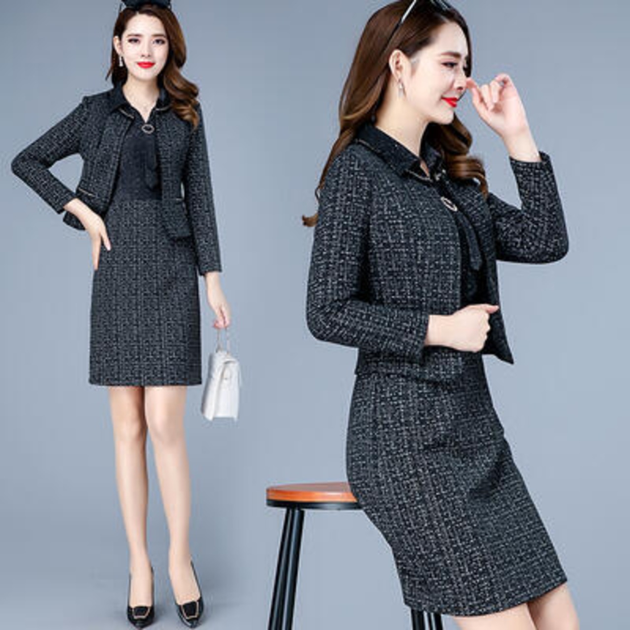 ジャケットとワンピースのセットアップなので着るだけできちんと感が演出できるコーディネートが完成♪