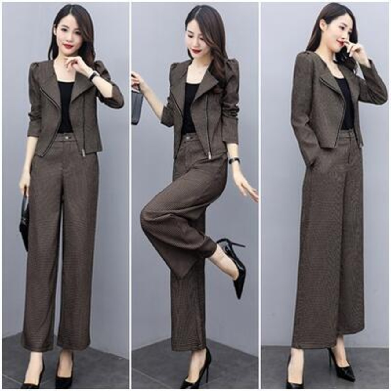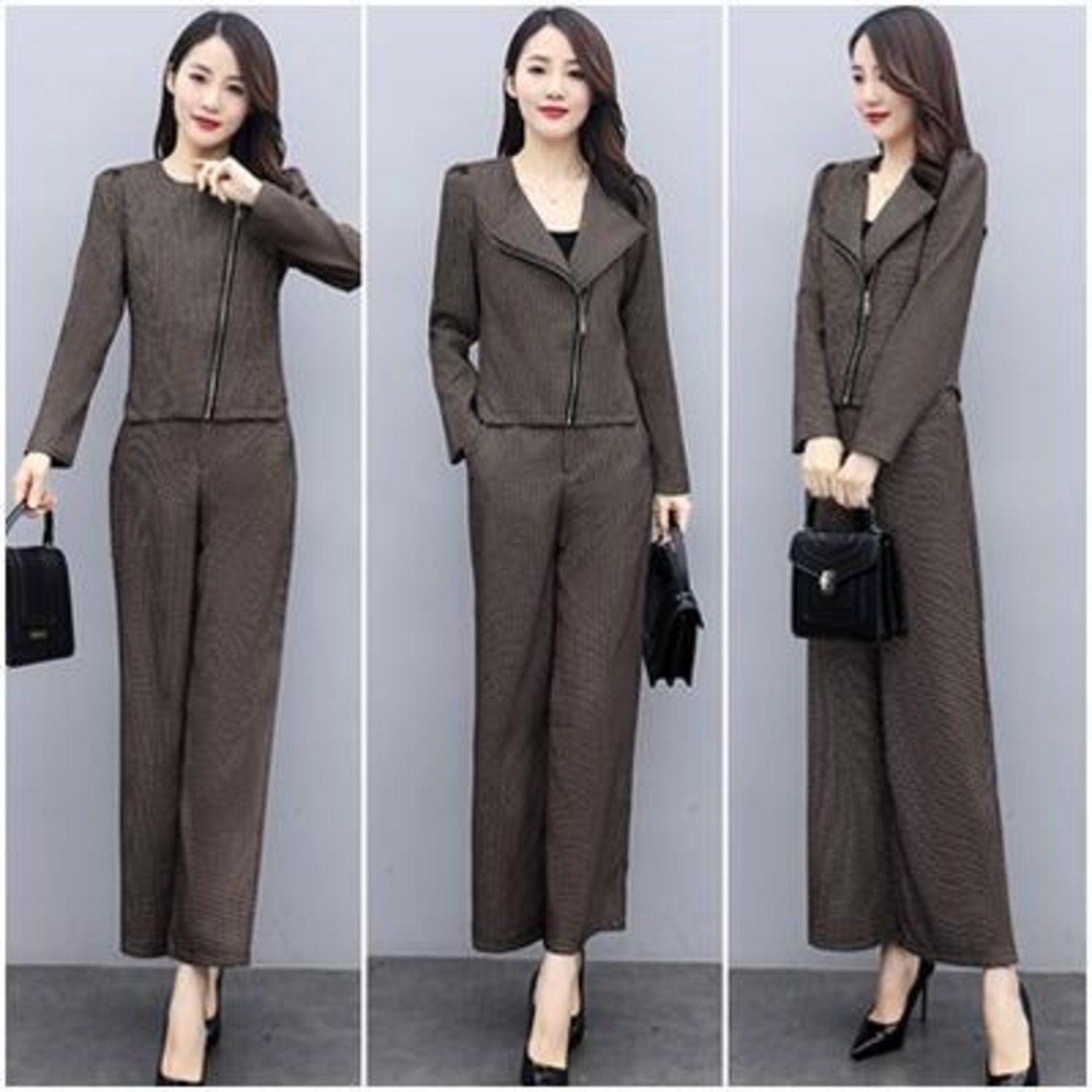全2色 卒業式 スーツ ママ おしゃれ ジャケット カジュアル セレモニー 入学式 母 ママスーツ 入園式 卒園式 七五三 フォーマル セットアップ パンツセット ワイドパンツ グレー ブラウン 大きいサイズ XL 2XL 3XL かっこいい ゆったり 体型カバー ウエストゴム 春秋 春 30代 40代