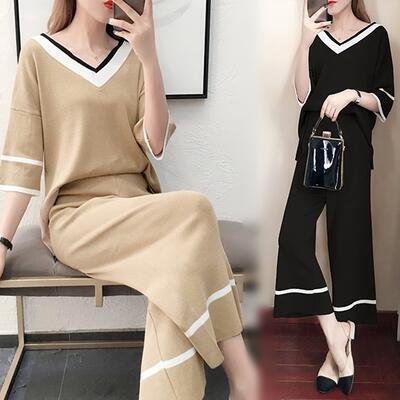 全3色 セットアップ レディース カジュアル 袖あり おしゃれ パンツセット クロップドパンツ 半端丈 パンツ 5分袖 大きいサイズ XL 2XL 3XL かっこいい ゆったり 体型カバー 春秋 春 ブラック 黒 ベージュ アプリコット カーキ きれいめ こなれ感 ワイドパンツ 20代 30代 40代 50代