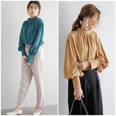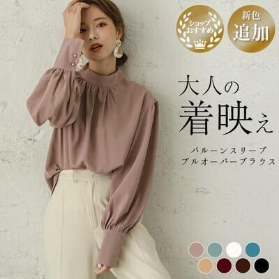 全8色 大きいサイズ XL トップス レディース きれいめ 袖あり ボリュームスリーブ カジュアル おしゃれ クラシカル ブラウス とろみ シャツ かっこいい ハイネック ゆったり 体型カバー エレガント ピンク ブルー ホワイト 白 ブラウン ブラック 黒 上品 春夏 春秋 20代 30代 40代 50代