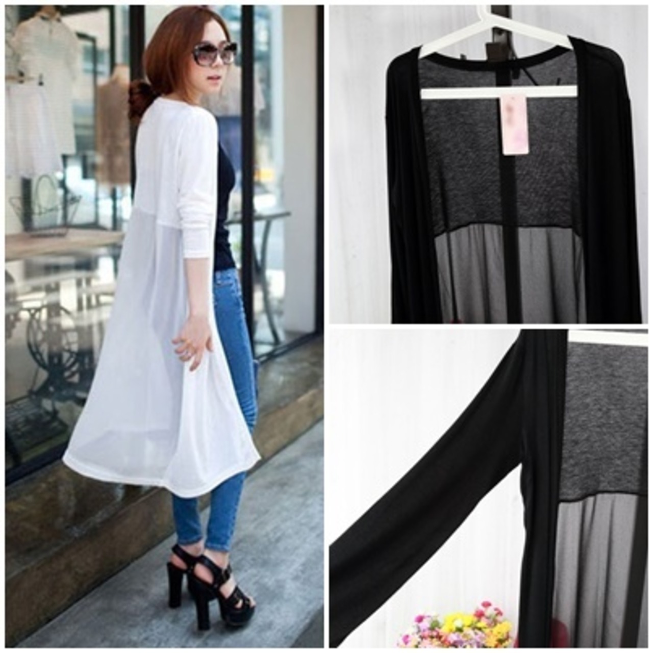 全4色 トップス ロング丈 カーディガン レディース きれいめ 袖あり カジュアル おしゃれ クラシカル とろみ カーデ かっこいい ゆったり 体型カバー エレガント ホワイト 白 ブラック 黒 グレー ネイビー 上品 春 春夏 春秋 夏 秋 UVカット 20代 30代 40代 50代