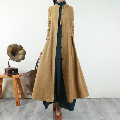 全4色 スプリングコート レディース 春コート ミセス アウター 春 ミディアムロング丈 マキシ丈 春秋 おしゃれ 可愛い シンプル 長袖 Aライン カジュアル リネン ナチュラル イエロー レッド ブラック 黒 グリーン 20代 30代 40代 50代