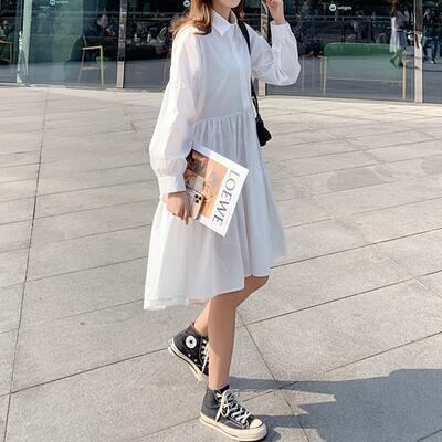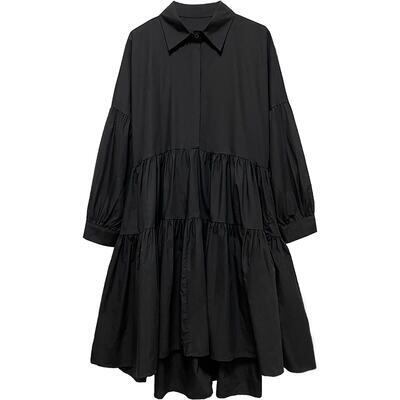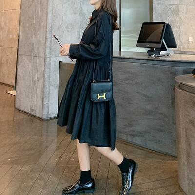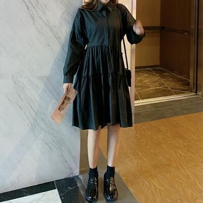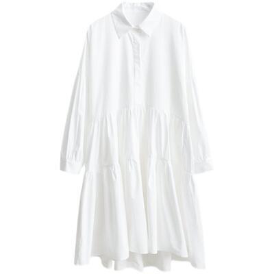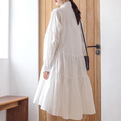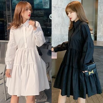 全2色 ワンピース 春 きれいめ 袖あり カジュアル おしゃれ レディース ミモレ丈 ひざ丈 ワンピ ドレス ティアードスカート シャツワンピ 長袖 可愛い シンプル フレア 春夏 春秋 女子会 体型カバー ホワイト 白 ブラック 黒 20代 30代 40代 50代