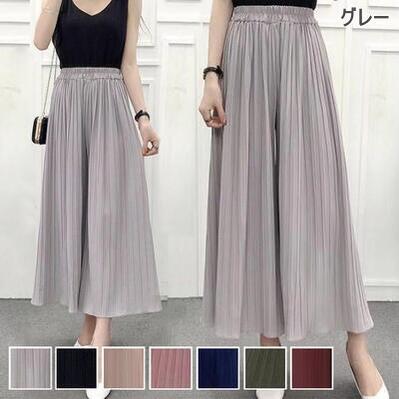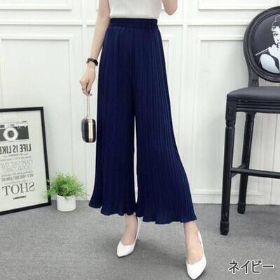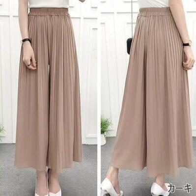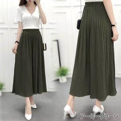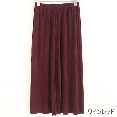 全7色 ワイドパンツ レディース きれいめ カジュアル おしゃれ ゆったり プリーツ ワイドレッグ パンツ ボトムス ガウチョ ウエストゴム 楽ちん お尻カバー ブラック 黒 カーキ ピンク ネイビー グレー グリーン レッド 20代 30代 40代 50代