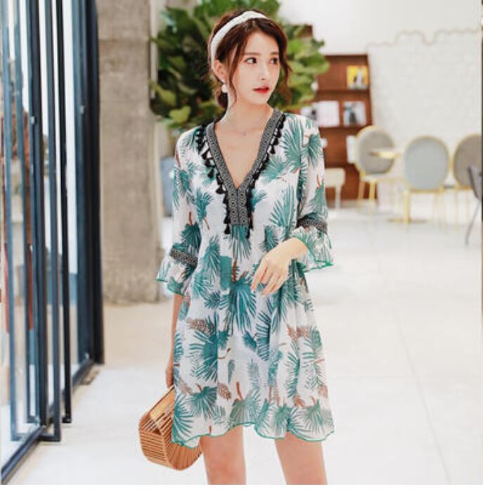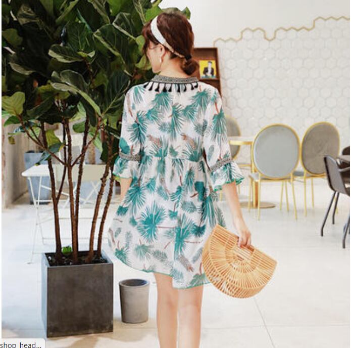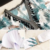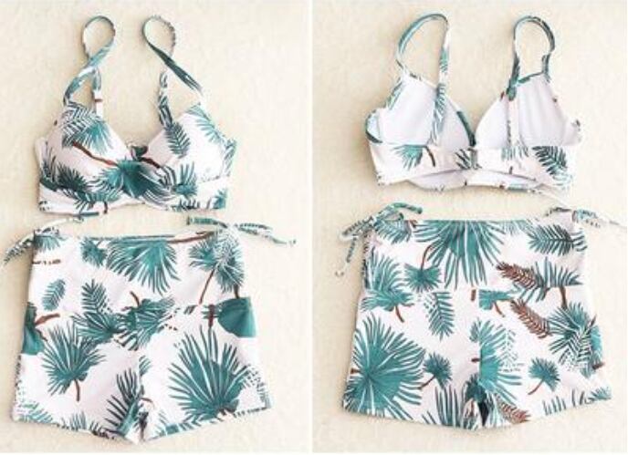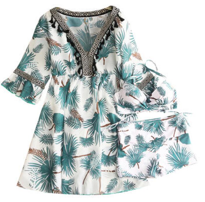 ボタニカル柄が可愛い水着とワンピースの3点セット。