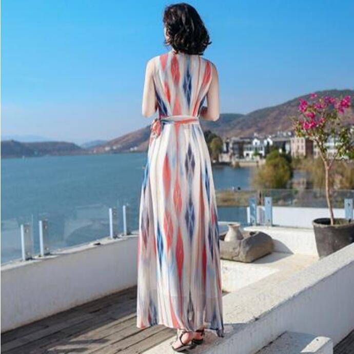 ワンピース おしゃれ 夏 きれいめ カジュアル ロング丈 マキシ丈 春夏 秋 シフォン ノースリーブ レディース ワンピ ドレス ウエストリボン ハイウエスト フォークロア フェミニン スリム 脚長 リゾート 大きいサイズ ホワイト 白 20代 30代 40代 50代