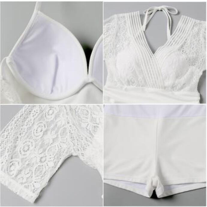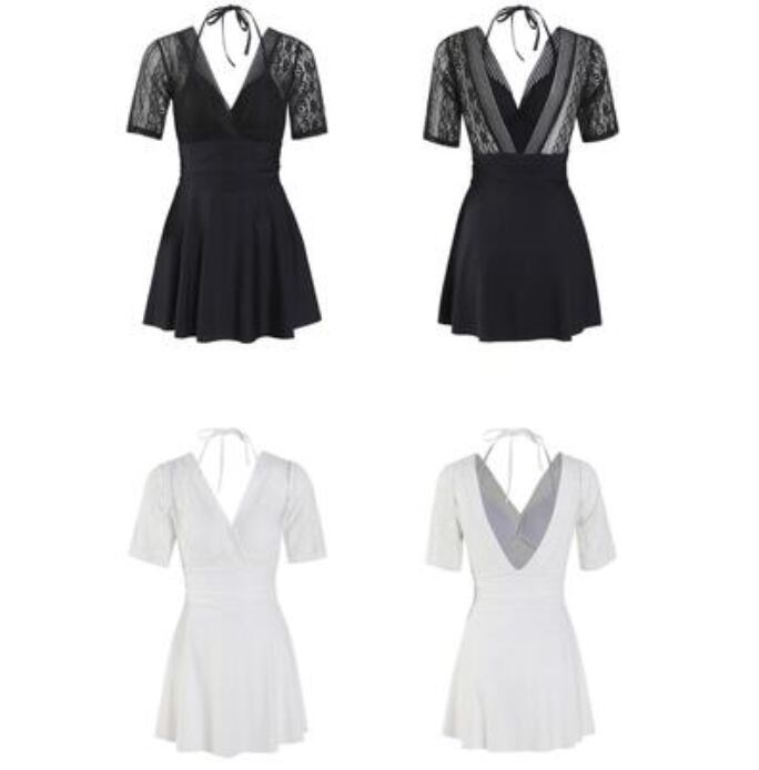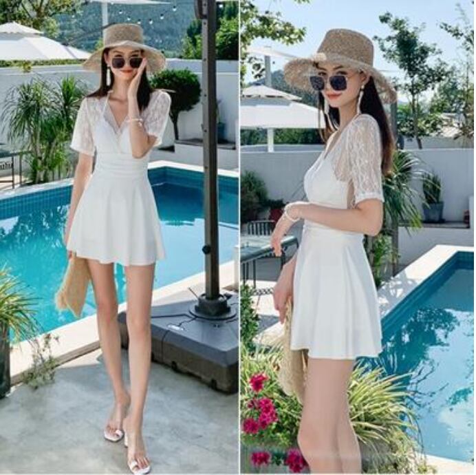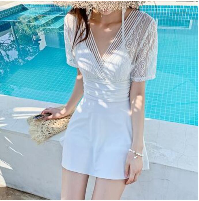 全2色 レディース 水着 おしゃれ スイムウェア ワンピース ハイウエスト 透け感 ショートパンツ シアー エレガント フェミニン 可愛い レース 夏 リゾート 海 プール ビーチ 体型カバー 着痩せ 大きいサイズ ホワイト 白 ブラック 黒 20代 30代 40代 50代