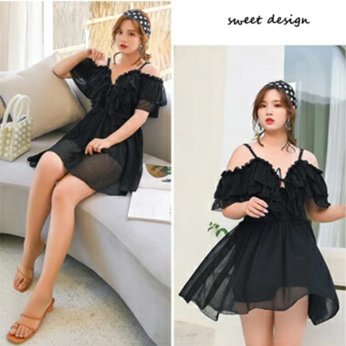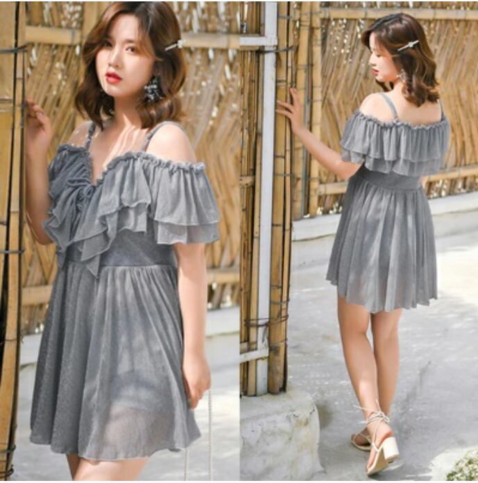 全2色 レディース 水着 おしゃれ スイムウェア ワンピース ハイウエスト 透け感 フリル シアー エレガント フェミニン 可愛い リボン 夏 リゾート 海 プール ビーチ 体型カバー 着痩せ 大きいサイズ 2XL 3XL 4XL 5XL グレー ブラック 黒 20代 30代 40代 50代