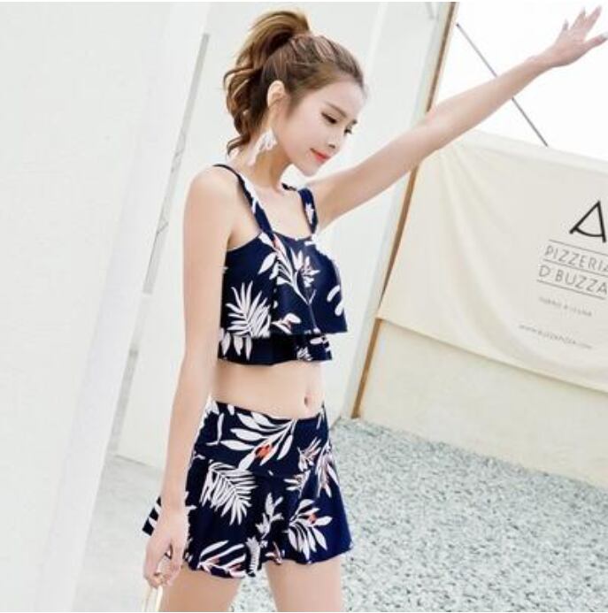 レディース 水着 おしゃれ スイムウェア ビキニ セパレート ショートパンツ ハイウエスト フリル タンキニ エレガント フェミニン 可愛い 夏 ボタニカル リゾート 海 プール ビーチ 体型カバー 着痩せ 脚長 大きいサイズ ネイビー 20代 30代 40代 50代
