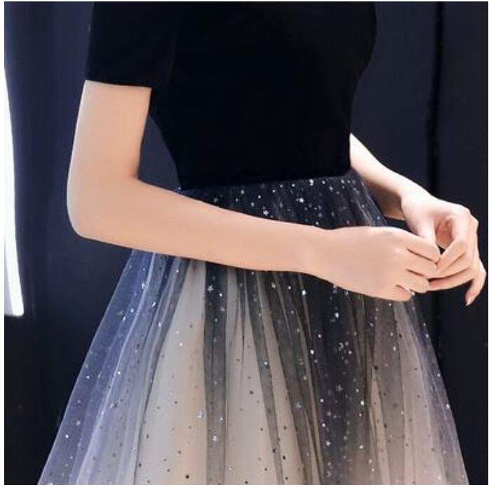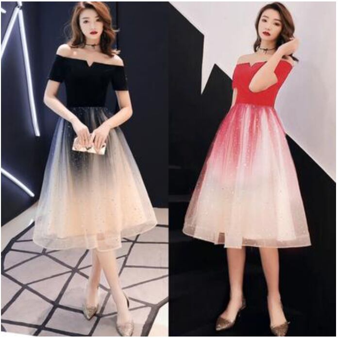 全2色 ワンピース 袖あり ひざ丈 カジュアル エレガント 春 春夏 春秋 半袖 おしゃれ レディース 可愛い フェミニン ワンピ ドレス ラメ チュール パーティー ハイウエスト オフショルダー きれいめ Aライン ブラック 黒 レッド 赤 20代 30代 40代 50代
