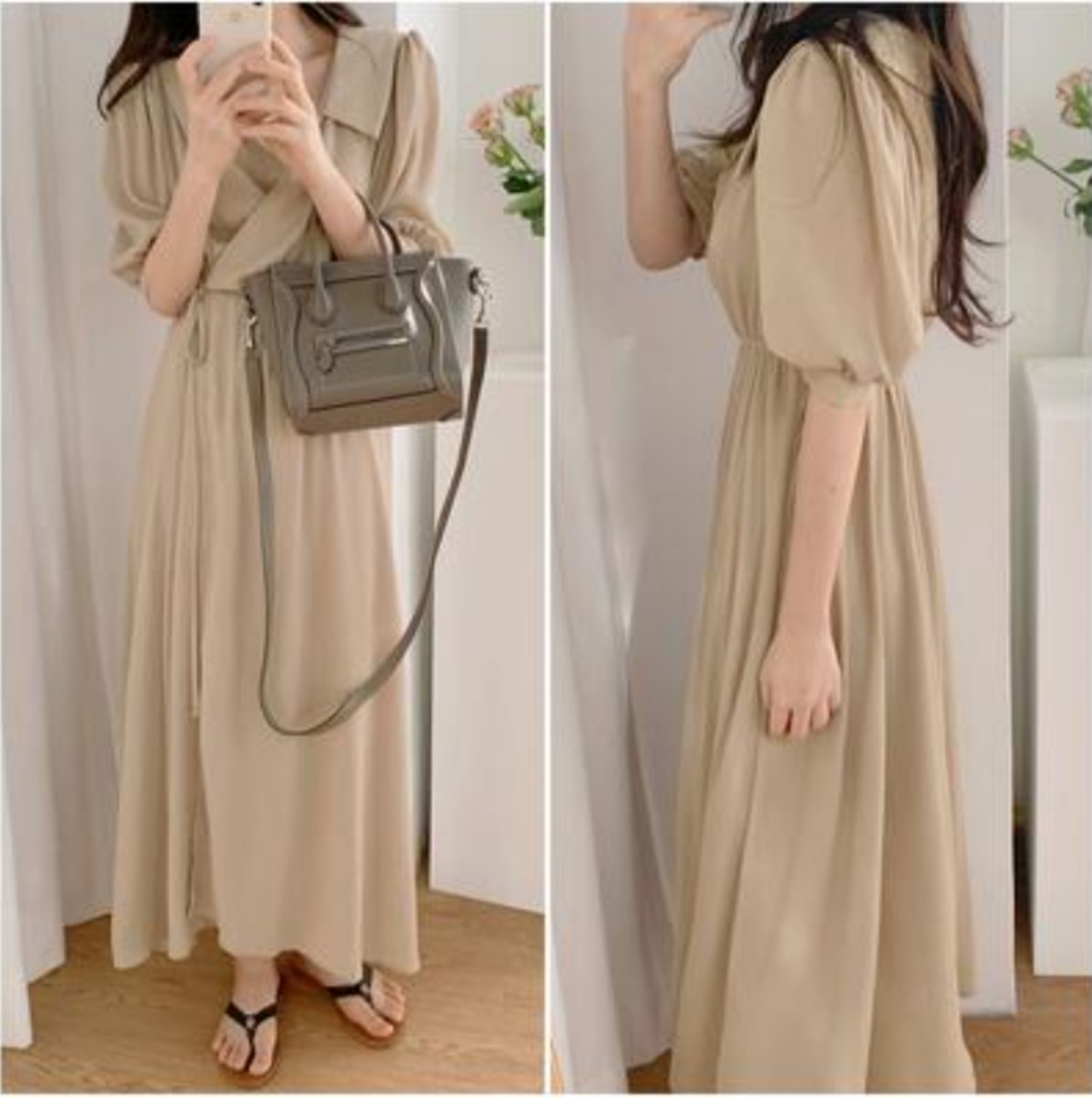 カシュクールの大人可愛いロングワンピース。