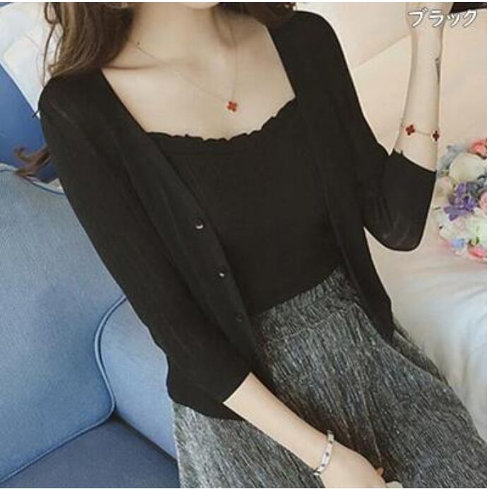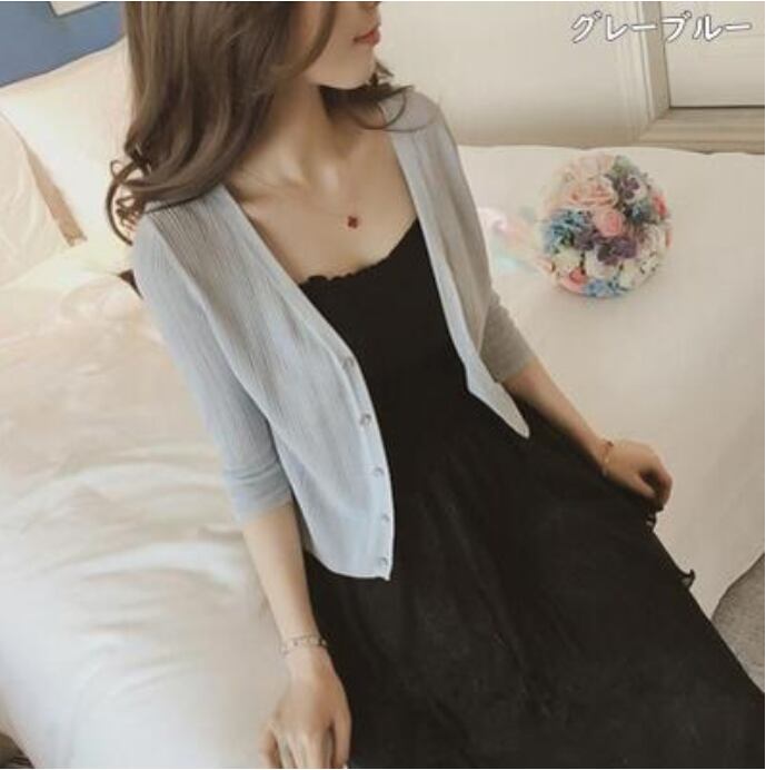 薄手の7部袖ショート丈カーディガン。