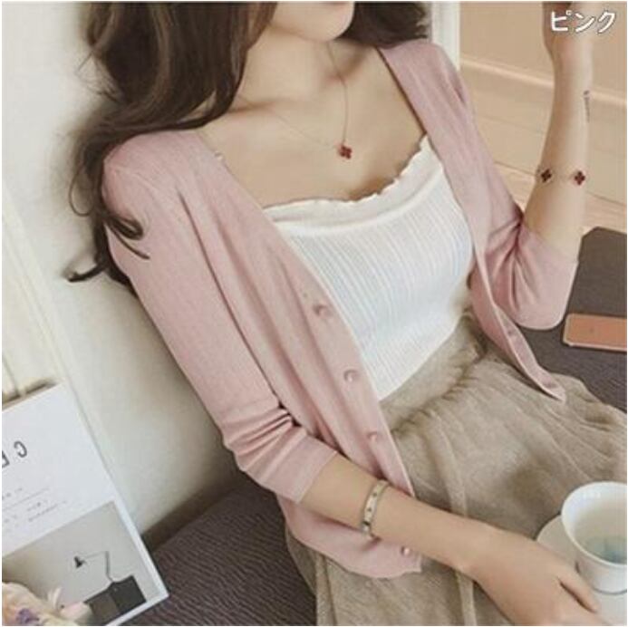 全5色 トップス レディース カーディガン きれいめ カジュアル ショート丈 おしゃれ 春 春夏 春秋 可愛い 7分袖 薄手 Vネック フェミニン シンプル ナチュラル 透け感 こなれ感 オフィス 大きいサイズ XL アプリコット ピンク ブラック 黒 ホワイト 白 グレー 20代 30代 40代 50代