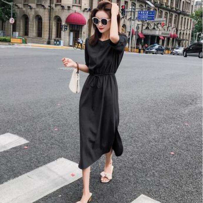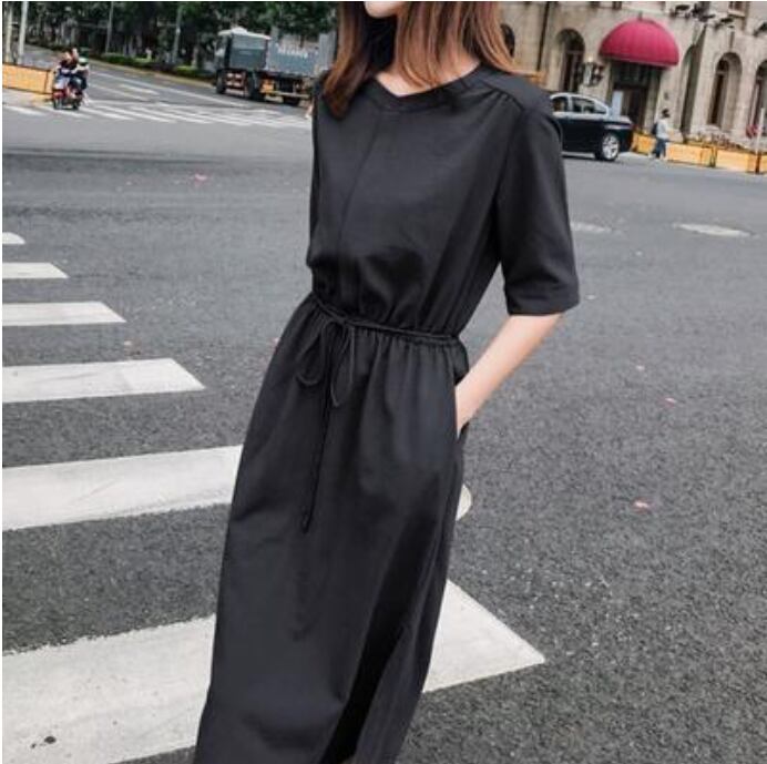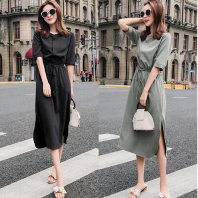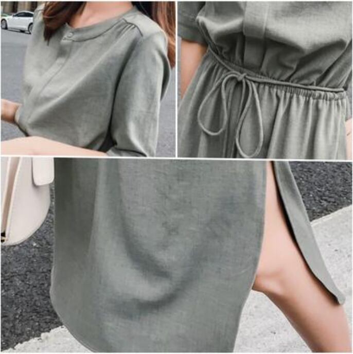 全2色 ウエストゴム ゆったり 体型カバーリネン ワンピース ナチュラル 半袖 コットン 薄手 ロング丈 ミモレ丈 カジュアル きれいめ 春 夏 春夏 春秋 半袖 5分袖 麻 綿 おしゃれ レディース 可愛い フェミニン エレガント ワンピ ドレス ウエストリボン 楽ちん グリーン ブラック 黒 リネン混 20代 30代 40代 50代