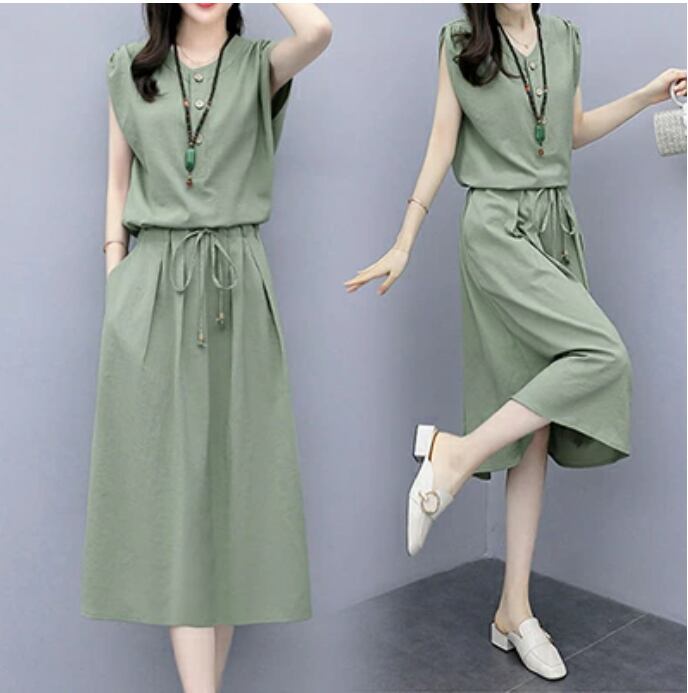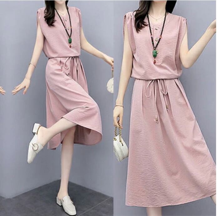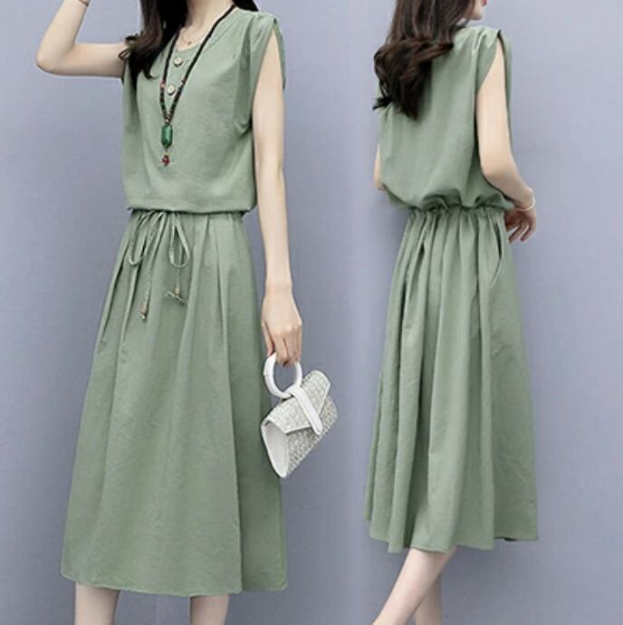 全3色 大きいサイズ ゆったり かっこいい リラックス リネン ワンピース ナチュラル 半袖 薄手 涼しい コットン ミモレ丈 カジュアル おしゃれ ノースリーブ 綿 麻 春 夏 秋 レディース ミドル丈 ワンピ ドレス フレア シンプル 体型カバー ピンク ブラック 黒 緑 M L XL リネン混 2XL 20代 30代 40代 50代