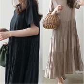 全3色 大きいサイズ ゆったり リラックス ティアードリネン ワンピース ナチュラル 半袖 薄手 涼しい コットン リネン混 綿 麻 体型カバー 春 夏 春夏 ロング カジュアル おしゃれ 袖あり ミモレ丈 秋 レディース ロング丈 ワンピ ドレス フレア ベージュ ブラック ベージュ 黒 M L XL 2XL 20代 30代 40代 50代