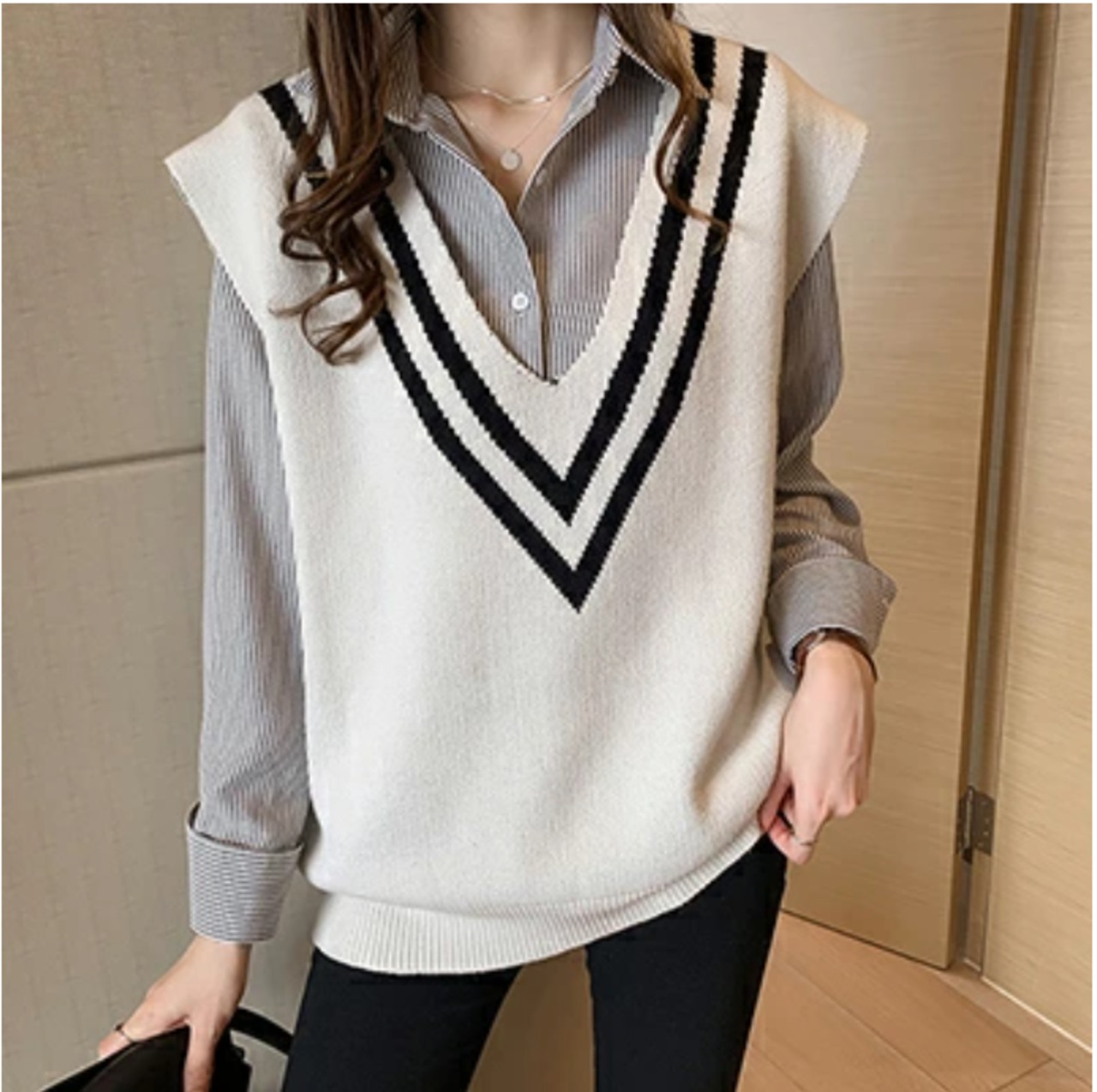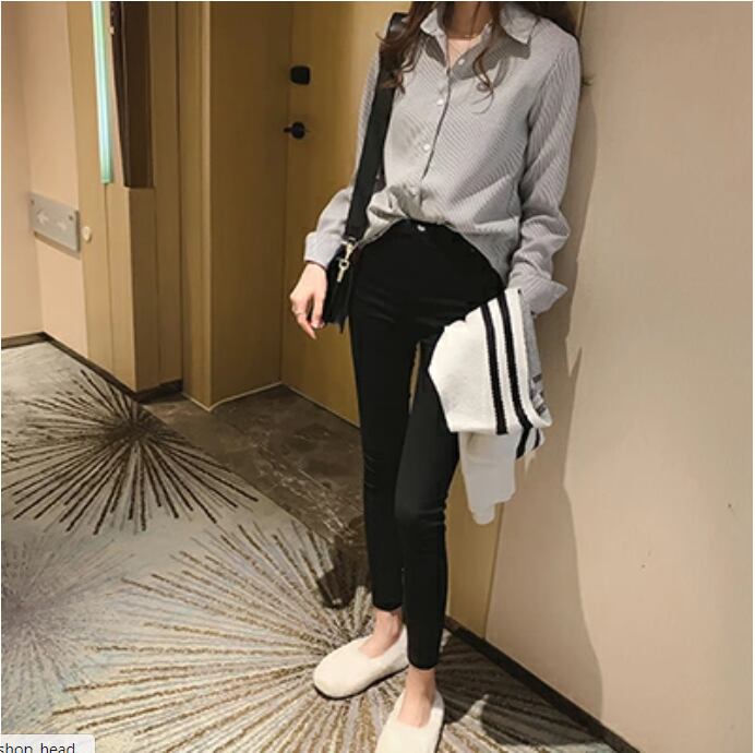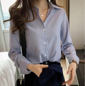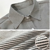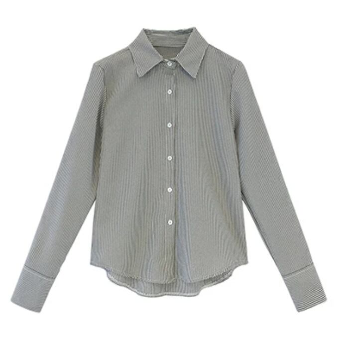 通勤シーンでも普段のお出かけ着としても使いやすいマニッシュな細ストライプシャツ。