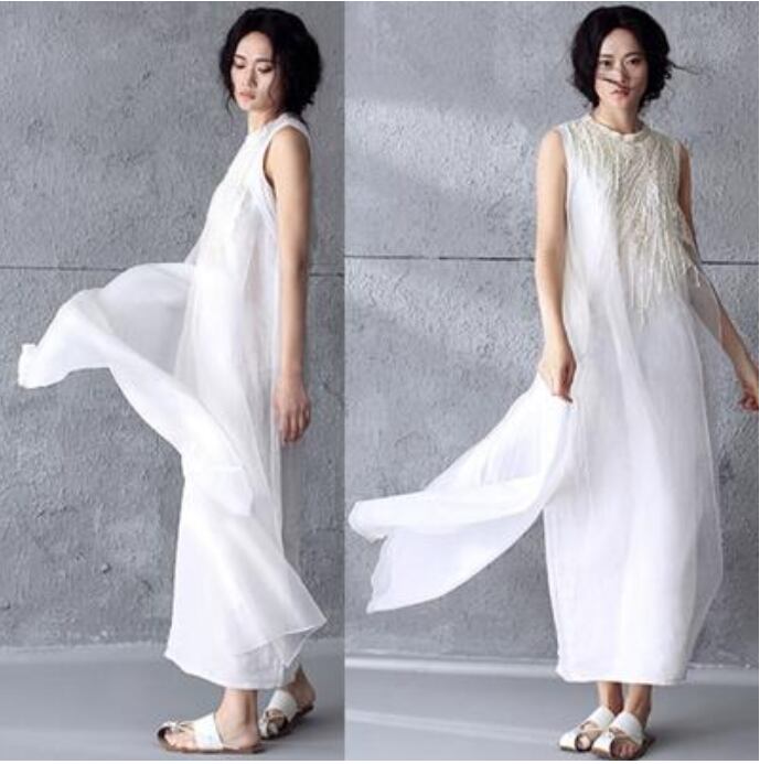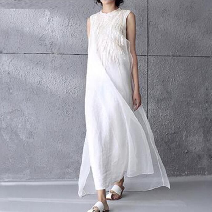 大きいサイズ XL 2XL 小さいサイズ XSリネン ワンピース ナチュラル 薄手 涼しい コットン マキシ丈 ロング丈 エレガント 夏 ノースリーブ おしゃれ 麻 綿 レディース 刺繍 フェミニン ワンピ ドレス パーティー 演奏会 リゾート シフォン きれいめ ホワイト リネン混 春夏 秋 20代 30代 40代 50代