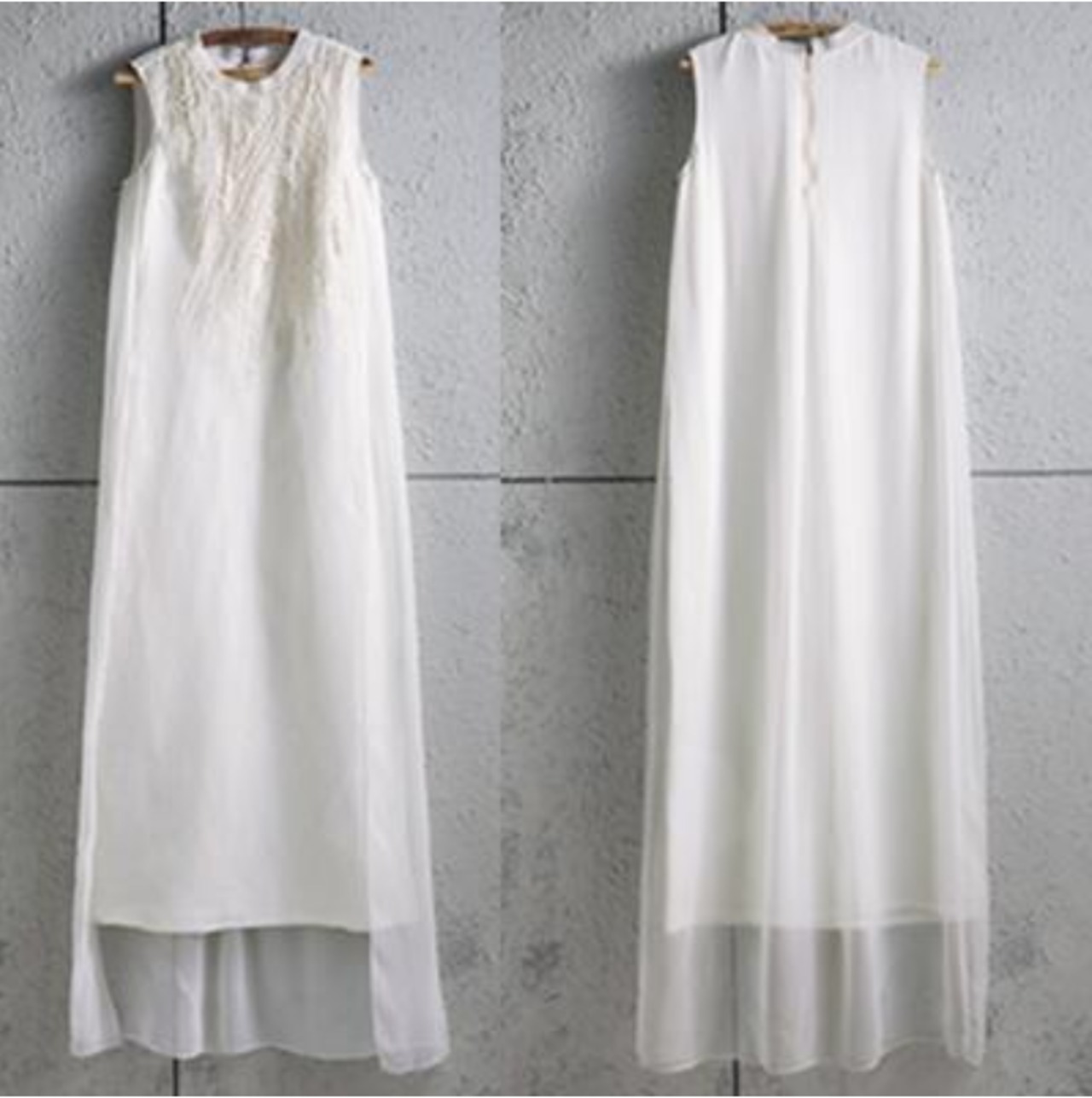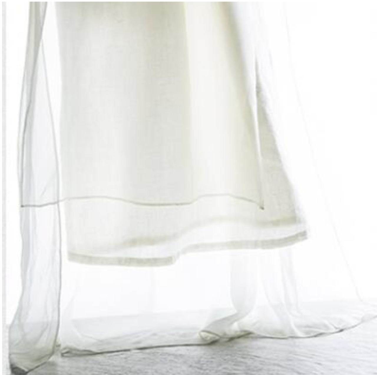 綿麻のワンピースにオーガンジーを重ねた華やかなワンピース。