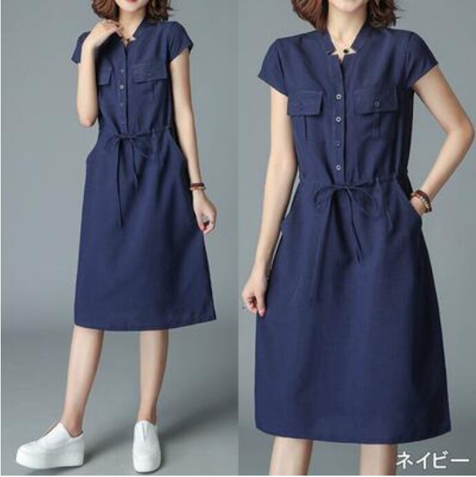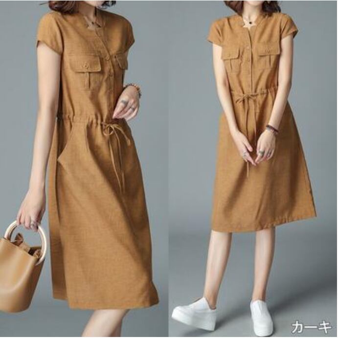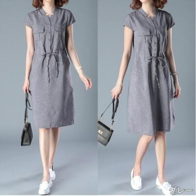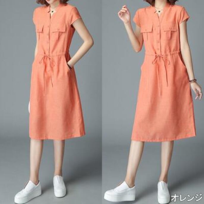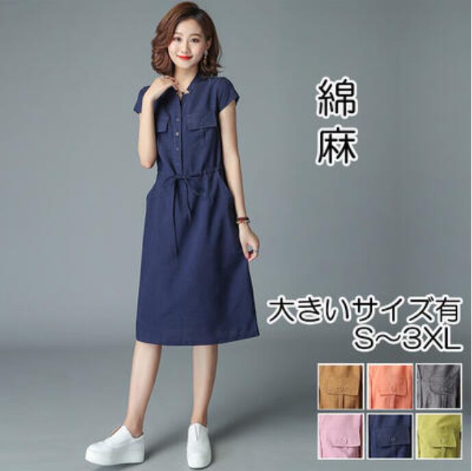 全6色 大きいサイズ XL 2XL 3XLリネン ワンピース ナチュラル 半袖 薄手 涼しい コットン リネン混 綿 麻 体型カバー ゆったり リラックス 春 夏 春夏 レディース ワンピ ドレス ウエストリボン カジュアル ハイウエスト カーキ グレー オレンジ ネイビー パープル グリーン 20代 30代 40代 50代