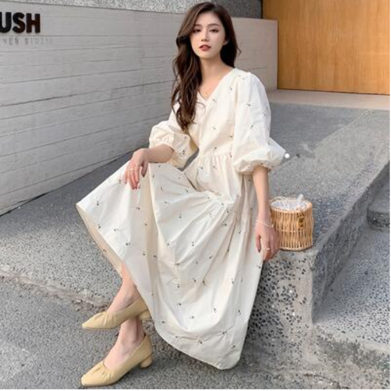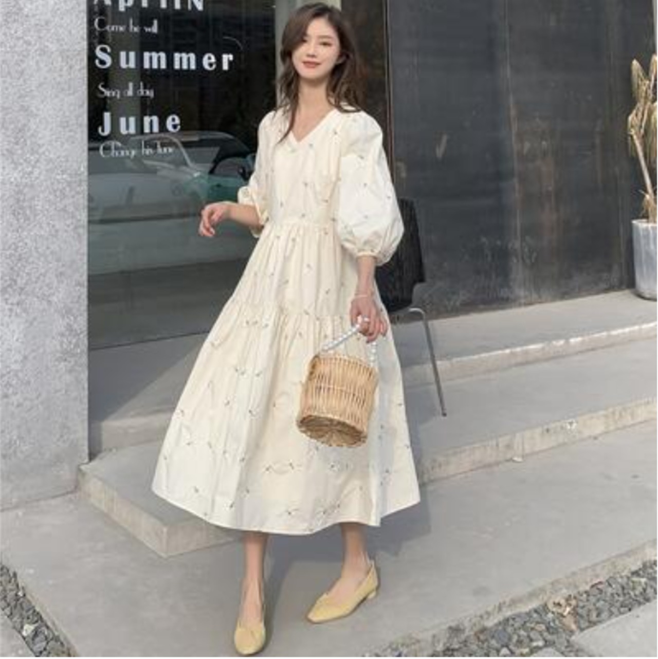 ボリューム袖とティアードのふんわりシルエットが女性らしさをアピール。