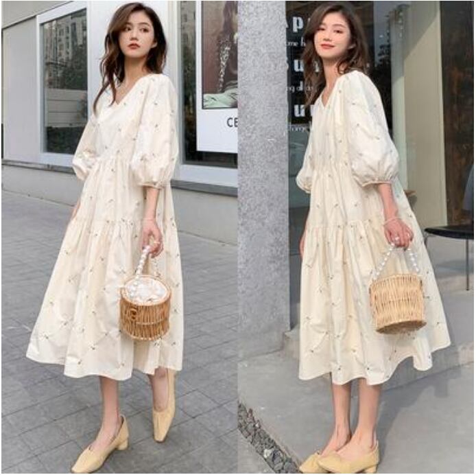 ティアード ワンピ ティアードワンピースリネン ワンピース ナチュラル 半袖 薄手 涼しい コットン 花柄 5分袖 カジュアル おしゃれ レディース 麻 綿 春 夏 秋 可愛い ドレス ミモレ丈 ティアード ボリューム袖 体型カバー ロマンティック 大きいサイズ XL 2XL 3XL ホワイト リネン混 20代 30代 40代 50代