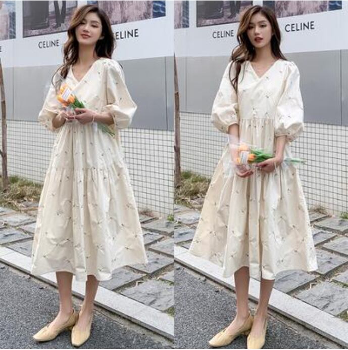 小花柄の刺繍が可愛いロマンティックなワンピース。