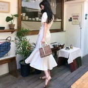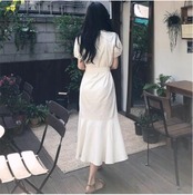 マーメイドシルエットが可愛いミモレ丈ワンピース。