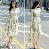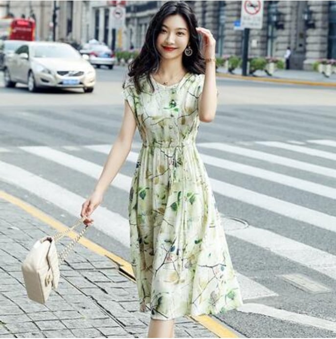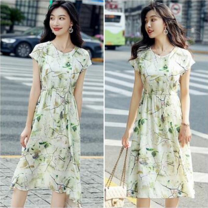 ウエストリボン フレンチスリーブリネン ワンピース ナチュラル 半袖 薄手 涼しい コットン カジュアル おしゃれ レディース 麻 綿 春 夏 秋 可愛い ワンピ ドレス ボタニカル ひざ丈 Aライン ウエストリボン フェミニン エレガント ナチュラル 大きいサイズ XL 2XL グリーン リネン混 20代 30代 40代 50代