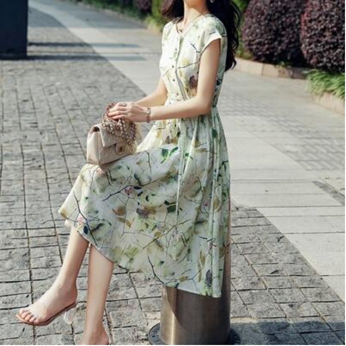ボタニカル柄がお洒落な綿麻のワンピースです。