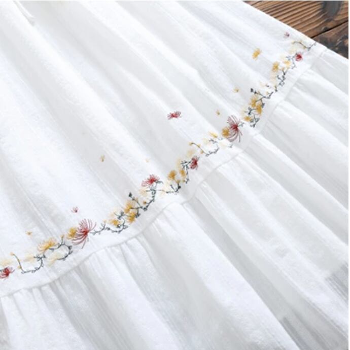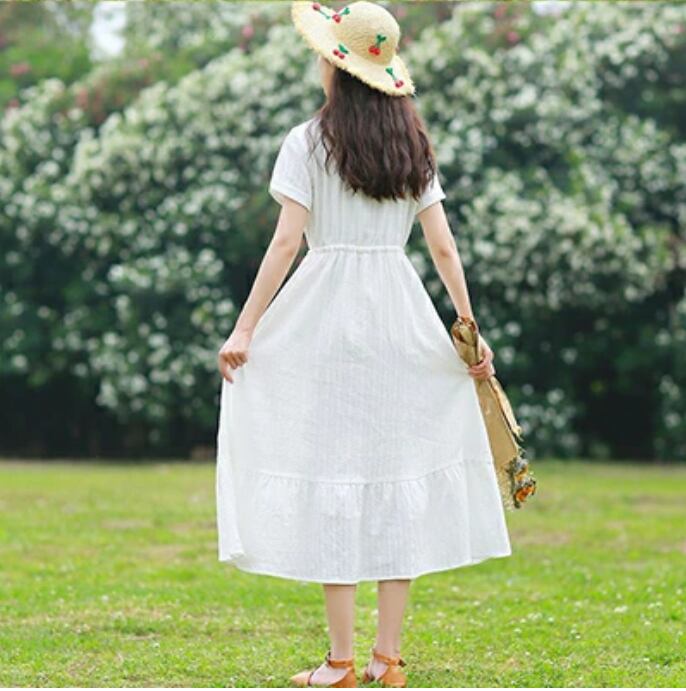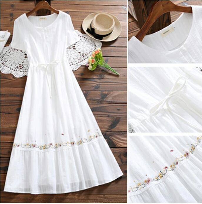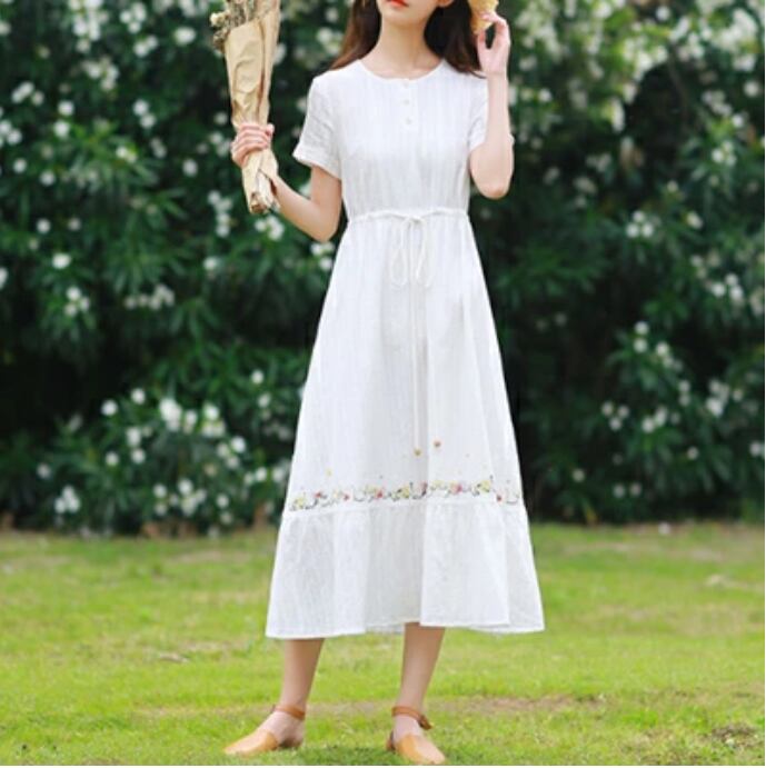 大きいサイズ ゆったり リラックス ティアードリネン ワンピース ナチュラル 刺繍 半袖 薄手 涼しい コットン 綿 体型カバー 春 夏 春夏 カジュアル おしゃれ 袖あり ミモレ丈 秋 レディース ロング丈 ワンピ ひざ下 ドレス フレア ホワイト 白 M L XL リネン混 2XL 3XL 20代 30代 40代 50代